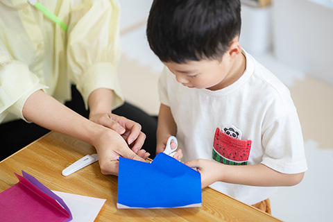 子どもたち本人の発達段階に合わせた生活、運動、言葉、社会性に関する支援を行うことで、協調性など社会生活に必要なスキルの獲得を目指すとともに、家族支援や移行支援等のサポートを行います。