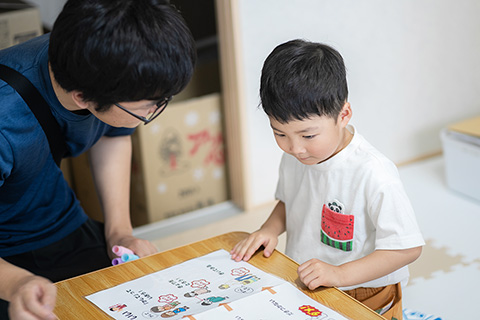 本人の好きなことや遊びを通じて、手先の訓練や模倣の練習をしていきます。