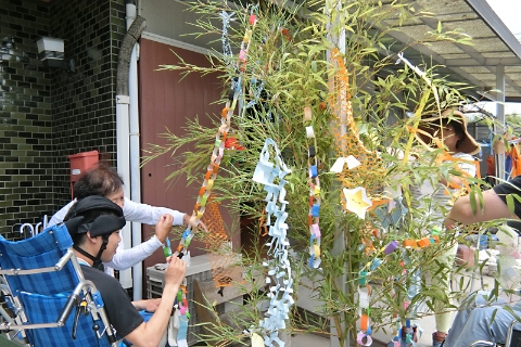 ホットケーキを重ねてツリー型のケーキを作ったり、ごちそうを食べ、音楽療法の先生によるクリスマスコンサートをしたりと、1年の最後をしめくくります。