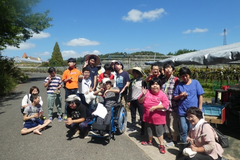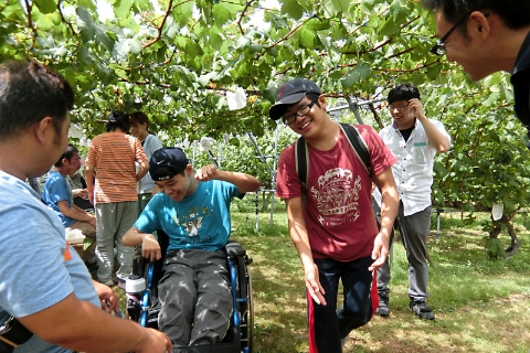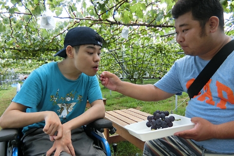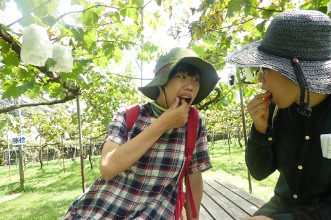 『果実の森』にてくだもの狩りを行います。みずみずしく甘ーいくだものをお腹いっぱい食べて「美味しいね」とみんなで笑顔になります。