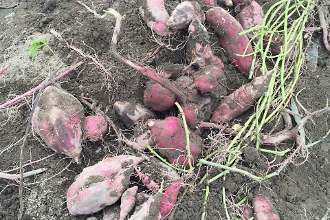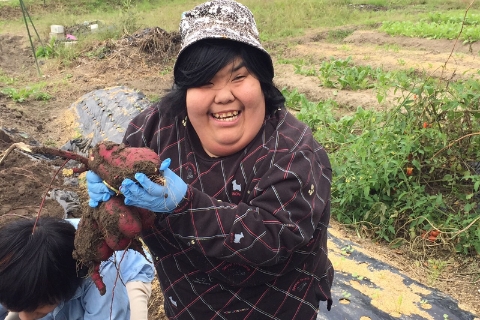春に植えたサツマイモを収穫します。大きく育ったサツマイモがたくさん収穫でき、自然と笑顔がこぼれます。